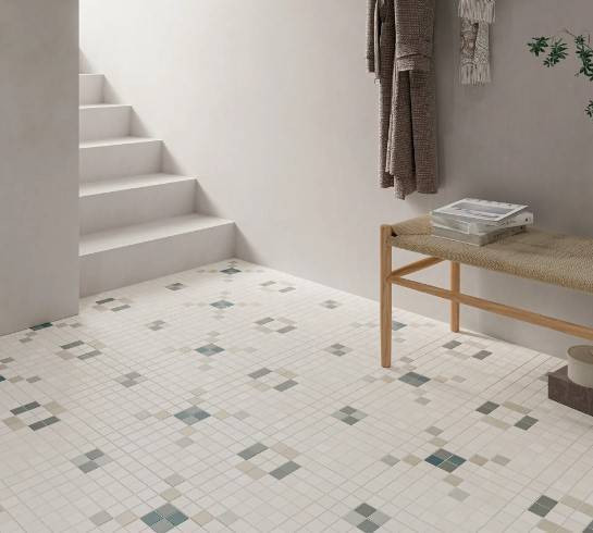 Veredeln Sie Ihr Zuhause mit der MOSAIKFLIESE PAC 4 28X28 CM aus unserer Kollektion Square, eine erlesene Wahl für alle, die Eleganz und modernes Design zu schätzen wissen. Diese Fliese, mit ihren harmonischen geometrischen Mustern und den Farbtönen in Weiß, Beige, Grau und Braun, verleiht Ihrer Küche, Ihrem Bad oder jedem anderen Innenraum eine Note von Raffinesse. Ihr Mosaik-Look, gepaart mit einem matten Finish und einer glatten Textur, verspricht eine ästhetische Wirkung, die sowohl modern als auch zeitlos ist. Für eine warme Atmosphäre sorgen eingelassene Leuchten, die die Farbpracht und die Feinheit des Musters besonders hervorheben.